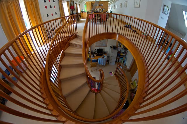 While we tend to first consider the practical aspect of a staircase, it is not uncommon to forget how this type of structure can have a true visual impact in a room. Because of its unique style and appearance, a staircase can help enhance your living room, lobby or any other room in the house.